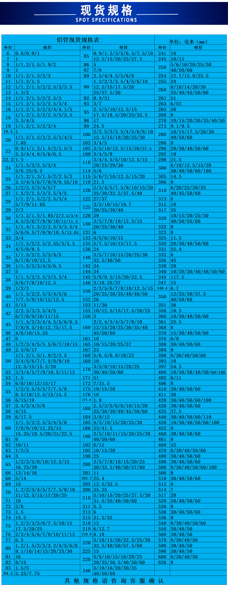 聚金鑫(上海)鋁業(yè)有限公司主要經(jīng)營無縫鋁管,鍛造鋁管,擠壓鋁管,鋁合金棒,鋁方棒,鋁排 5754鋁管_5182鋁管_鍛造鋁圓片_鍛造鋁管_6082鋁管_7075鋁棒 鋁管  鋁方管 無縫鋁管 厚壁鋁管 鋁板 鋁卷 鋁棒 鋁排 角鋁 鋁型材等有色金屬,所售產(chǎn)品均執(zhí)行鋁材行業(yè)標(biāo)準(zhǔn),有鋁型材擠壓生產(chǎn)線5條,噴涂、氧化生產(chǎn)線3條,配有CNC加工中心,以品質(zhì)保障、現(xiàn)貨規(guī)格多樣、效率高來滿足不同客戶需求,所售鋁型材主要應(yīng)用于零部件制造業(yè)、工程、煤礦、電力、汽車工業(yè)、建筑裝飾、能源化工、船舶制造業(yè)、機(jī)械工程、儀器設(shè)備、航空航天等行業(yè)。公司始終堅(jiān)持為客戶提供品質(zhì)保障的鋁材作為企業(yè)發(fā)展的根本,并為客戶提供系統(tǒng)的鋁材產(chǎn)品解決方案,以周到細(xì)致的服務(wù)回報(bào)廣大客戶.       主營產(chǎn)品材質(zhì)有:6063(T6普遍的合金材質(zhì)應(yīng)用廣泛) 6061(T4硬鋁管) 2A12(LY12多為無縫鋁管) 3A21(防銹硬鋁) 6005(厚壁鋁管) 7075(t5 T6航空鋁管) 5052(5056 5083海洋用鋁管) 1060(1050 1100純鋁管 多為鑄鋁管)     有縫鋁管規(guī)格 直徑4mm-506mm 壁厚0.7mm-50mm(材質(zhì)基本為6063 6061 6005焊接性能好,硬度一般,應(yīng)用多。     鍛打鋁管規(guī)格 直徑8mm-260mm 壁厚1mm-25mm(材質(zhì)全部為2024 也習(xí)慣稱之為LY12 或者2A12 硬度高 制作工藝為硬鋁棒穿孔)     防銹鋁管規(guī)格 直徑10mm-300mm 壁厚1mm-30mm(5系鋁管 有縫,多數(shù)用于輪船,游輪,汽艇上)7075現(xiàn)貨 直徑16mm-185mm 壁厚2mm-16mm(7075材質(zhì)多數(shù)為飛行器使用、其特點(diǎn) 密度低 質(zhì)量輕,硬度高于普通合金1.5-2倍!但是其價(jià)格也比同等規(guī)格的鋁管高了接近120%,所以價(jià)格決定了7075的鋁管多數(shù)用在較為貴、精密的設(shè)備上面)